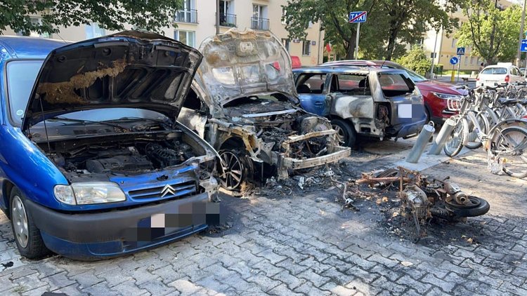 Pożar na Międzynarodowej. W nocy spłonęły trzy samochody i skuter