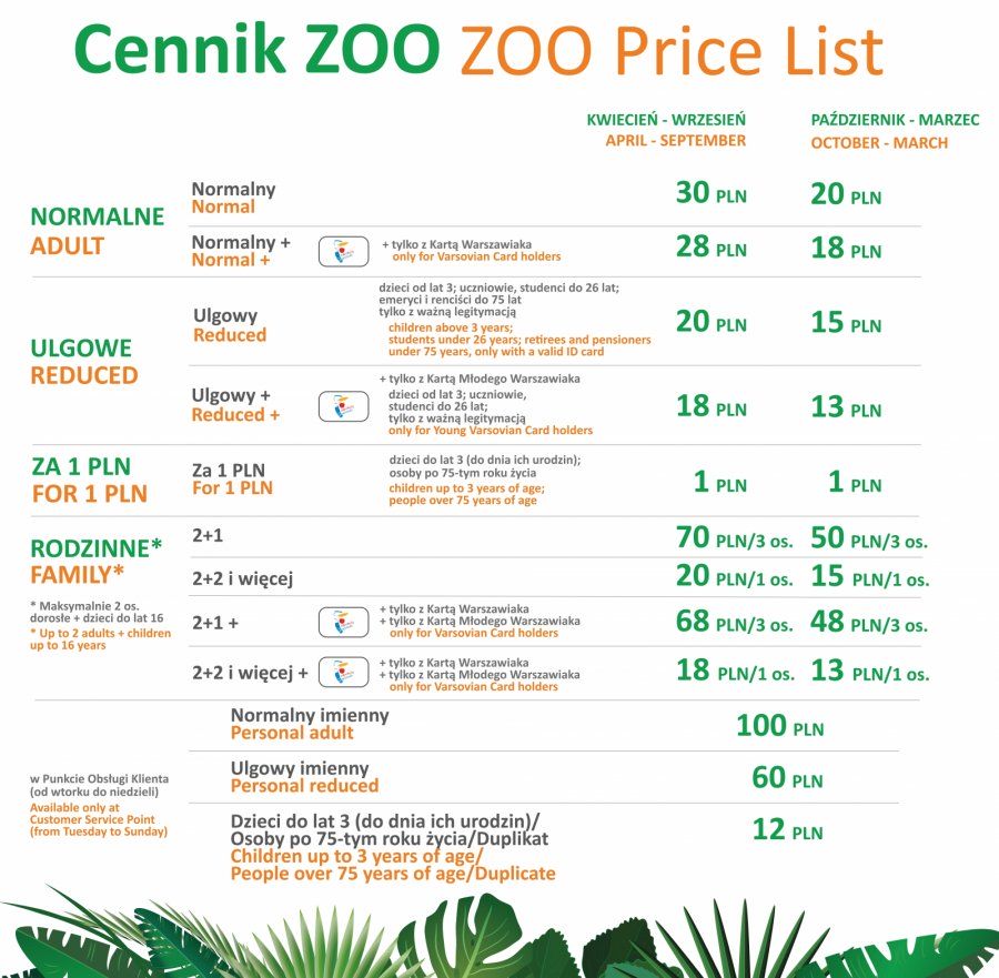 Od 1 września zmienił się cennik Miejskiego Ogrodu Zoologicznego. Dzieci do lat 3 oraz osoby po 75. roku życia wchodzą do zoo za złotówkę, a za bilet roczny zapłacą 12 zł. Na każde 10 osób uprawnionych do ulgi 1 opiekun ma wstęp za 1 zł.