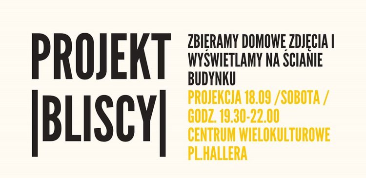 Projekt B L I S C Y wraca po długiej przerwie. W sobotę, 18 września zapraszamy na nową odsłonę projektu BLISCY na warszawski Plac Hallera, gdzie po raz kolejny wyświetlimy zdjęcia przekazane nam przez mieszkańców – zdjęcia rodziny, przyjaciół lub swoje, zdjęcia z małych, prywatnych sytuacji łączymy w nową opowieść i wyświetlamy w dużej skali – na fasadzie Centrum Wielokulturowego.