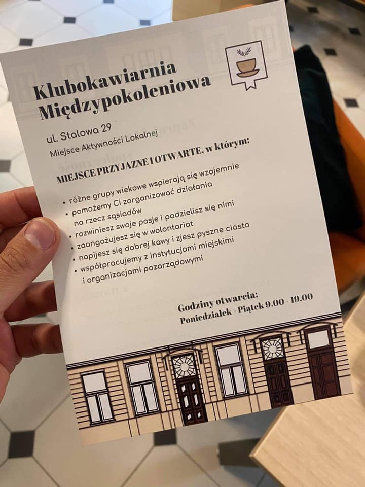 W kawiarni będzie można się napić kawy, ale to przede wszystkim będzie to miejsce do spędzania czasu wolnego dla osób w każdym wieku. Przy Stalowej 29 odbywać się będą działania animacyjne, spotkania sąsiedzkie, zajęcia rozwijające pasje i wiele innych. Każdy mieszkaniec i każda mieszkanka może zaproponować swój pomysł na działanie. "Nasza" klubokawiarnia prowadzona przez Centrum Aktywności Międzypokoleniowej Nowolipie.