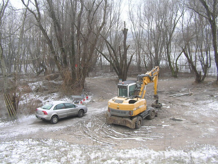 Na wysokości ulicy Okrzei rozpoczęła się budowa kładki pieszo-rowerowej. W związku prowadzoną inwestycją wykonawca wytnie około 40 rosnących nad Wisłą drzew oraz