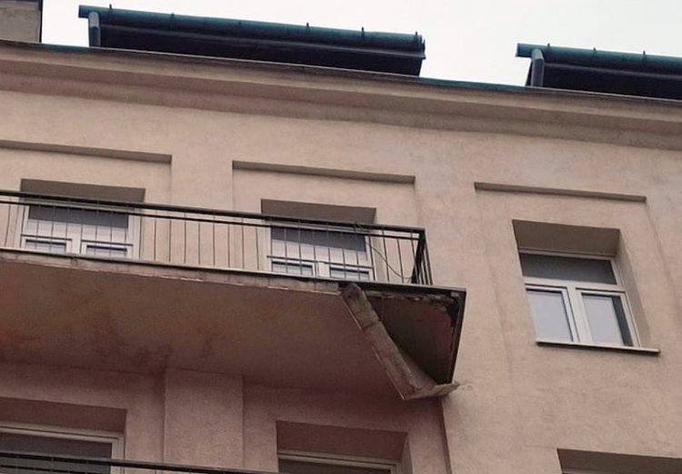 Z kamienicy przy Inżynierskiej 10 na Nowej Pradze oberwał się duży betonowy element balkonu na czwartym piętrze i zawisł nad chodnikiem. Przechodniów uratowały metalowe pręty, na których zatrzymał się oberwany fragment. Strażnicy miejscy zabezpieczyli zagrożony teren i wezwali strażaków.
