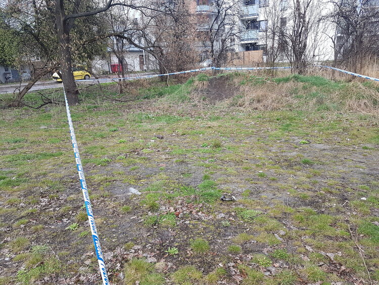 Niewybuch na Grochowie. Policjanci zabezpieczają miejsce znaleziska