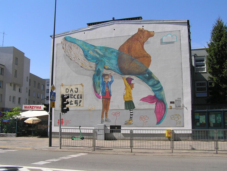Nowy mural "Daj dziecku siłę!". Wiemy jakie przesłanie ukryte zostało w postaciach niedźwiedzicy i humbaka