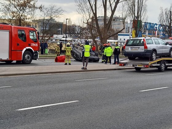 Wypadek z udziałem dwóch aut na Grochowskiej. Dachowanie i...