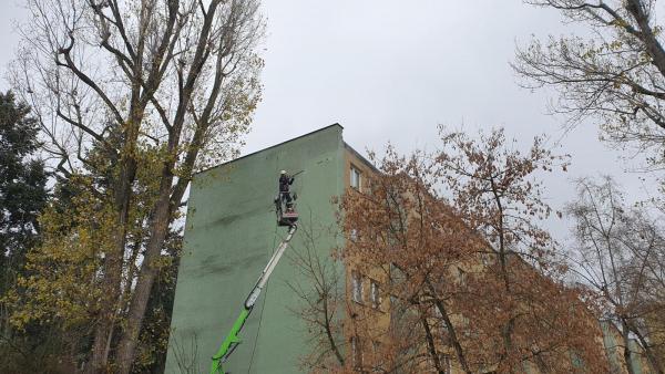 Mycie elewacji przy Osowskiej 88. Budynek odzyskuje blask