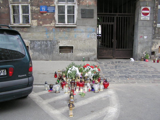 Brzeska 19: Znicze i kwiaty na miejscu zabójstwa