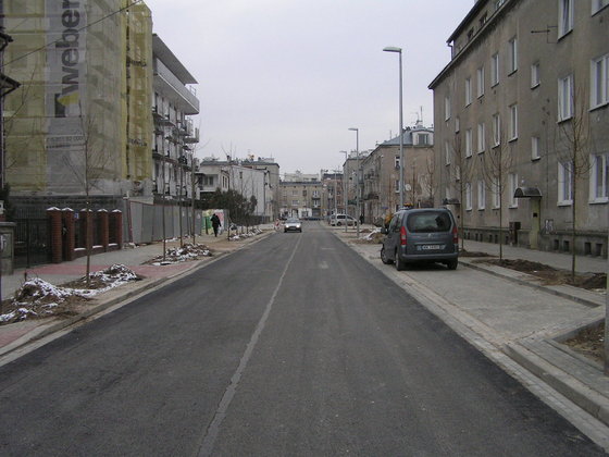 Ulica Rodziewiczówny z nową ścieżką rowerową