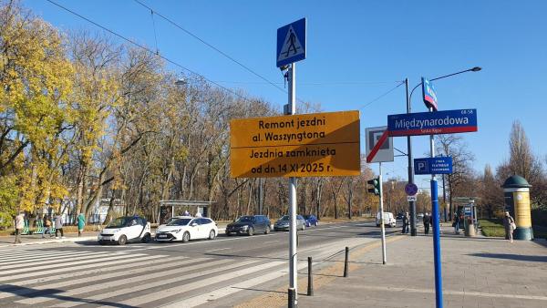 Frezowanie al. Waszyngtona. Ulica zamknięta w obu kierunkach