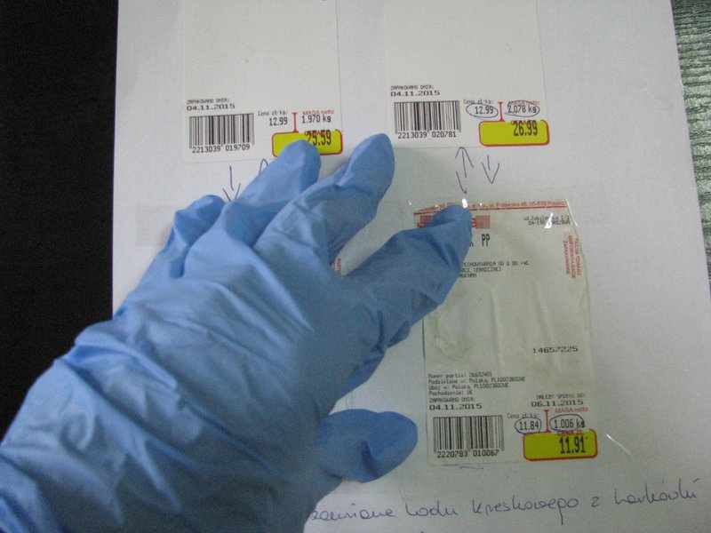 Policjanci zabezpieczyli też metki z cenami, a mięso powróciło do sklepu.