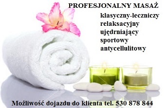 Masażysta oferuje masaże z dojazdem do domu klienta. Masaż relaksacyjny,masaż leczniczy.