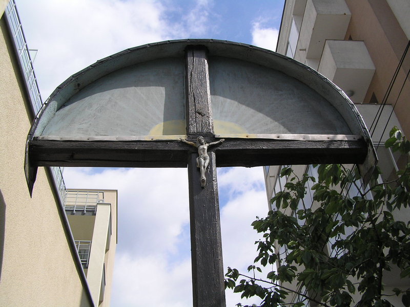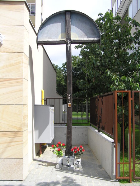 Do 2008 roku krzyż stał na niezabudowanym placu. W czasie budowy budynku został usunięty.
