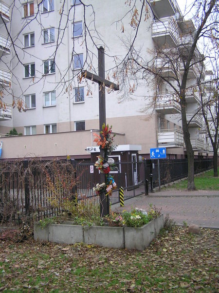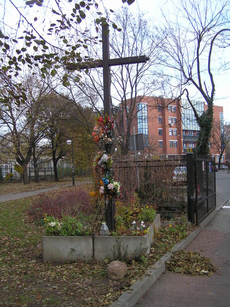 Metalowy krzyż ustawiono przy ulicy Namysłowskiej 2a na Nowej Pradze w dzielnicy Praga Północ w Warszawie.