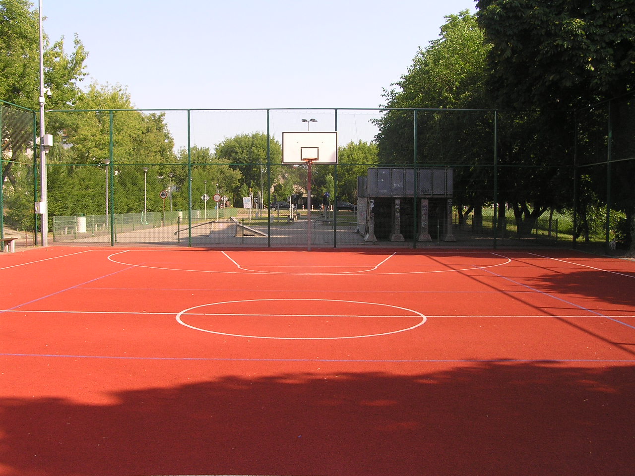 Boisko wielofunkcyjne posiada następujące wymiany: Płyta 32x19,18 m; koszykówka - 28x15 m; siatkówka - 18x9 m.