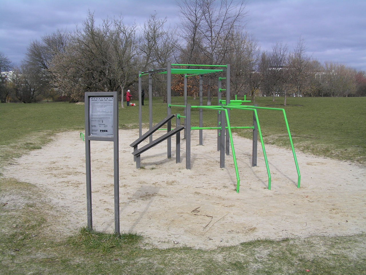 Siłownia Street Workout na Kamionkowskich Błoniach Elekcyjnych na Kamionku w dzielnicy Praga Południe w Warszawie.