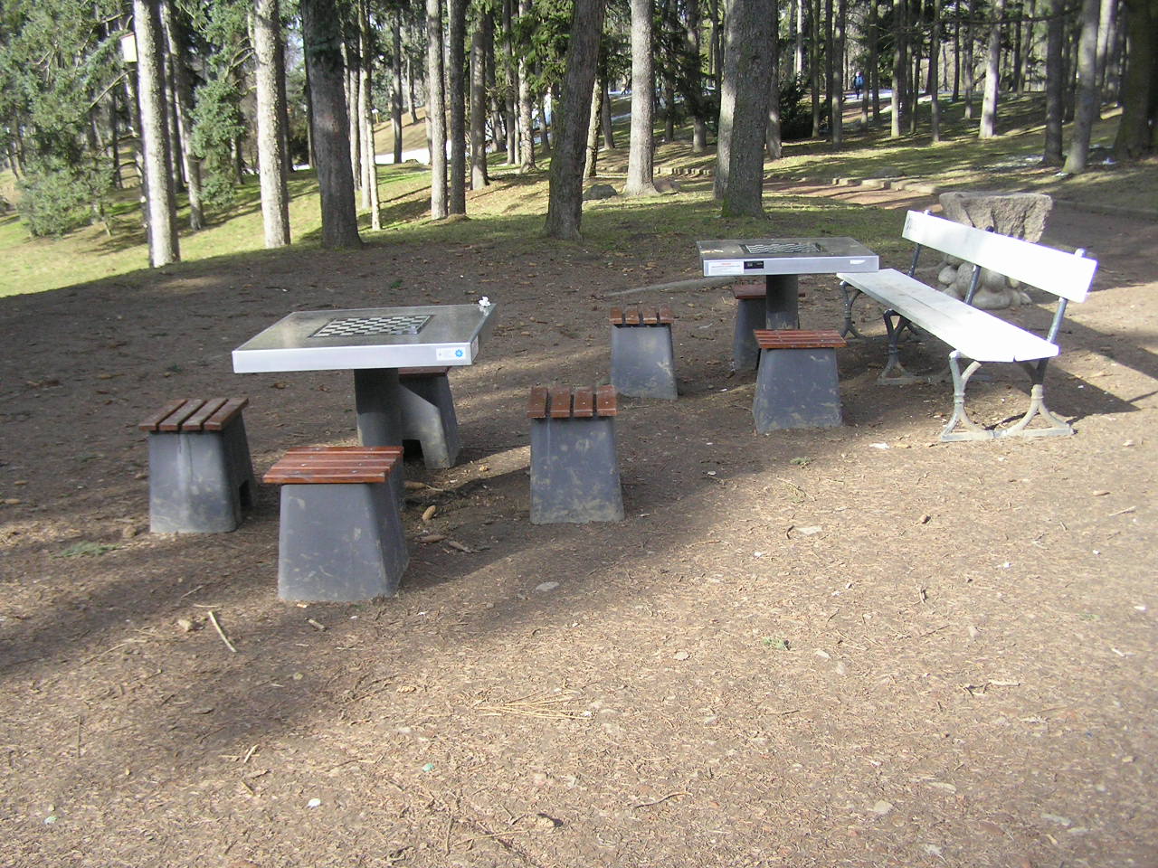 Dwa stoliki do plenerowej gry w szachy bądź warcaby zostały ustawione we wschodniej części parku w pobliżu wodospadu. Ich pojawienie się w listopadzie 2020 roku to efekt wyboru mieszkańców w głosowania na projekty zgłoszone w ramach budżetu obywatelskiego.