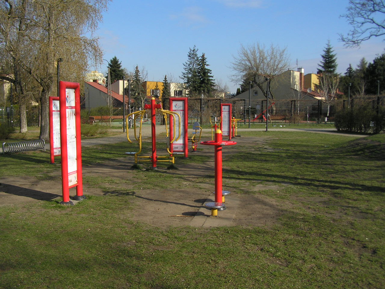 Siłownia plenerowa w Parku Znicza na Grochowie w dzielnicy Praga Południe w Warszawie.