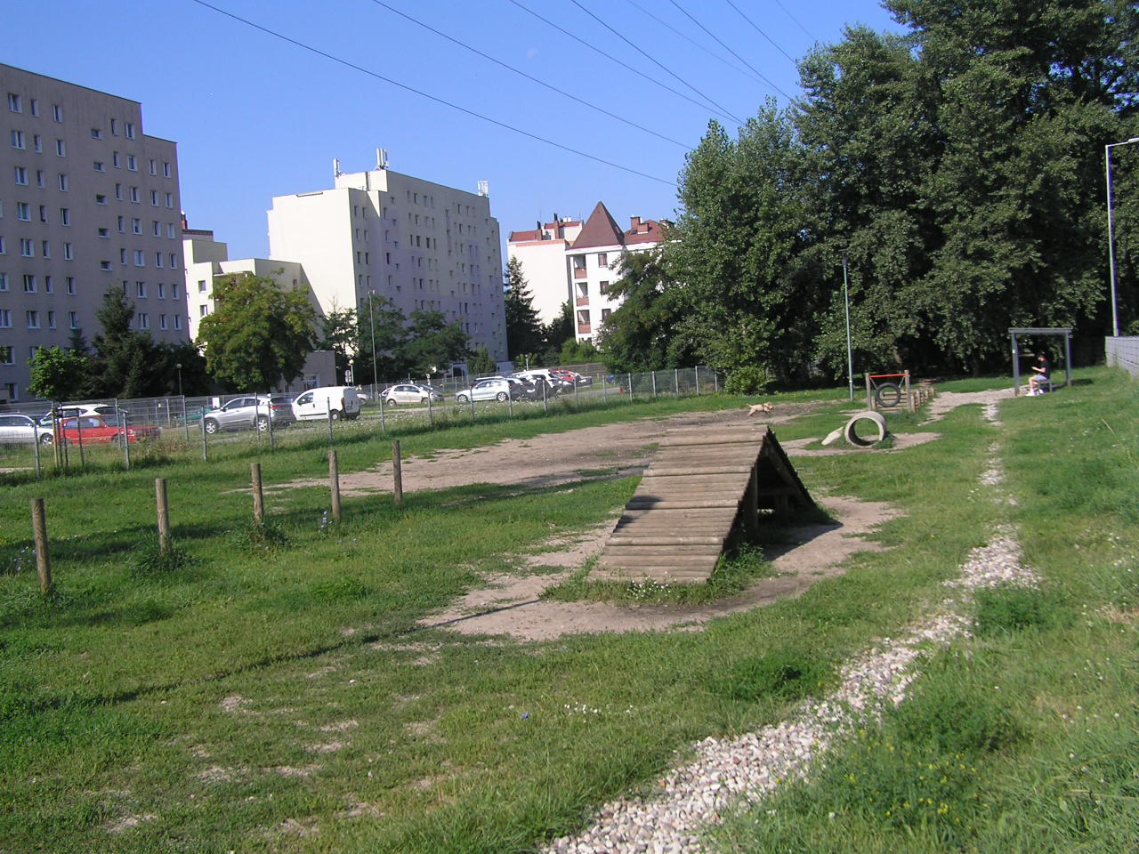Wybieg dla psów przy ulicy Jana Nowaka-Jeziorańskiego na Gocławiu w dzielnicy Praga Południe w Warszawie.