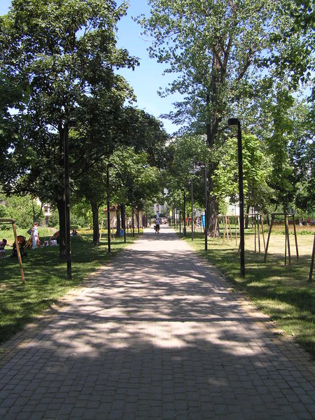 Utworzono dwa place zabaw: dla maluchów i starszych dzieci oraz fontannę. Powstały nowe ławki, pergole, ukształtowano teren (w tzw. falujące pryzmy), a alejki zostały wybrukowane.