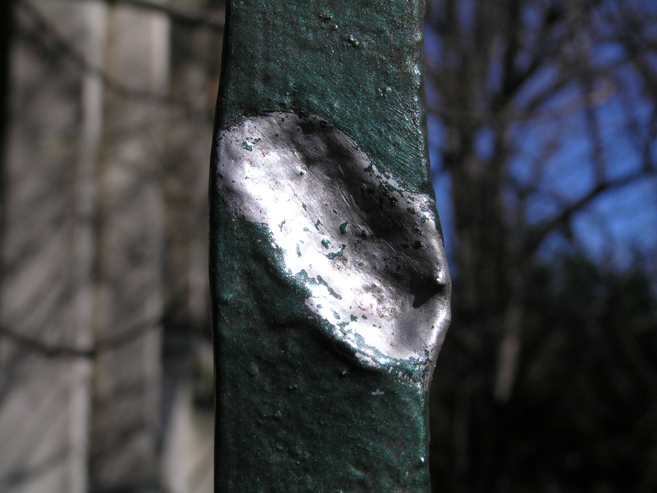 Obie tablicy stylizowane na zniszczona, aby zaznaczyć ogrom zniszczeń.