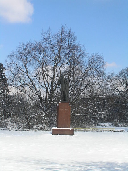 Przedwojenny spiżowy pomnik najprawdopodobniej został przetopiony na ozdoby dla Pałacu Kultury i Nauki.