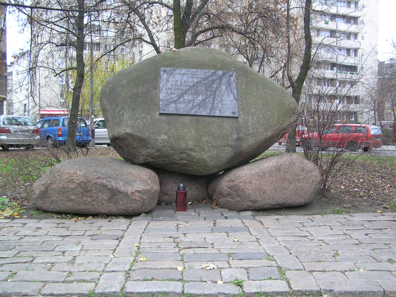 Głaz upamiętniający bohaterskich Obrońców Ojczyzny ustawiony przy ulicy przy 11 Listopada na Nowej Pradze w dzielnicy Praga Północ w Warszawie.