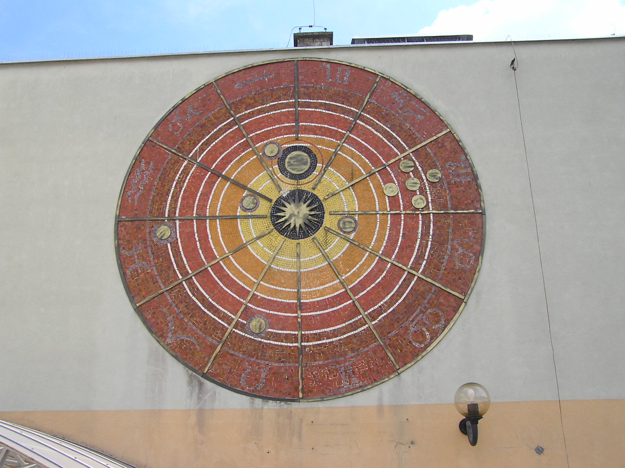 Mozaika nieznanego autora została umieszczona na ścianie pawilonu handlowego dawnego już osiedla im. Mikołaja Kopernika około 1973 roku. Wykonana jest w formie metalowych planet na tle kolorowych okręgów.