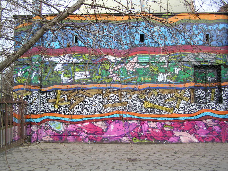 Mural jest przewrotna narracyjną formą o tematyce archeologicznej. Wgryzając się wgłąb warstw gruntu poznajemy historię naszej planety od czasów, kiedy zarządzało nią UFO, aż po nieodległą przyszłość, kiedy jedynym następcą człowieka będzie... Mr. Spray?!?