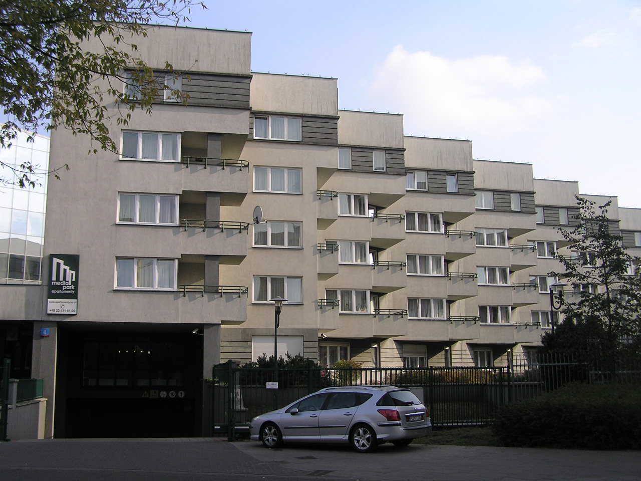 Ulica Dęblińska 4 - Apartamenty Media Park - budynek mieszkalny na Gocławku w dzielnicy Praga Południe w Warszawie.