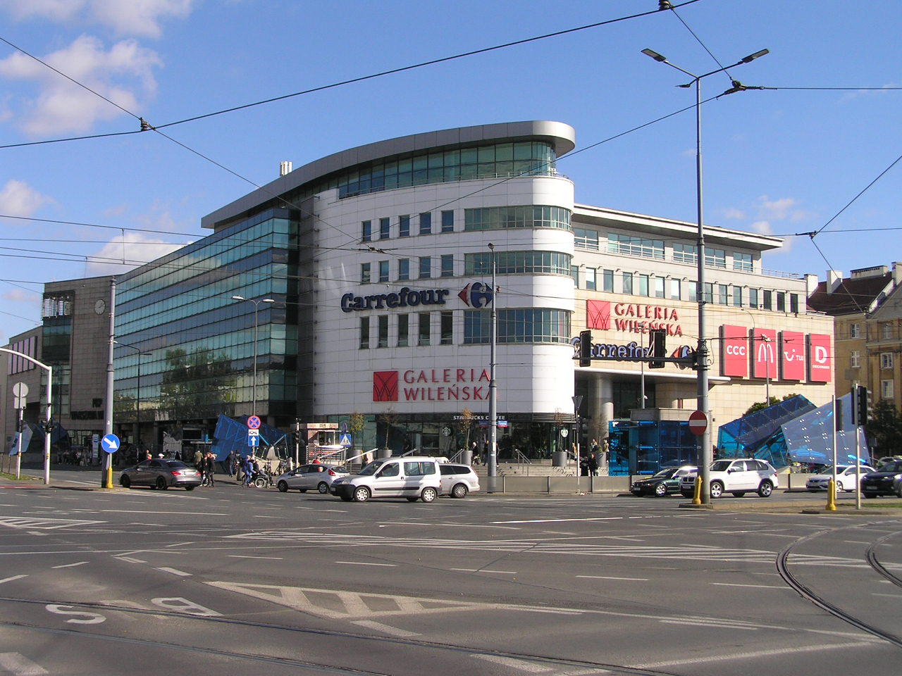 Otwarta w kwietniu 2002 roku Galeria Wileńska ma powierzchnię 117 tys. m2, w tym 63 tys. m2 powierzchni do wynajęcia. Największą powierzchnie wynoszącą 21,9 tys m2 zajmuje znajdujący się na drugim piętrze obiektu hipermarket Carrefour. Galeria handlowa posiada 105 lokali użytkowych. Nieco ponad 14 tys m2 zajmują biura.