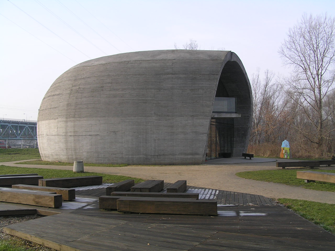 Ulica Wybrzeże Puckie 1 - Pawilon edukacyjny "Kamień" na Golędzinowie w dzielnicy Praga Północ w Warszawie.