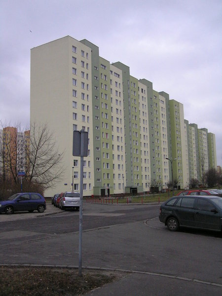12 piętrowy blok posiada 4 klatki schodowe z 166 lokalami mieszkalnymi.