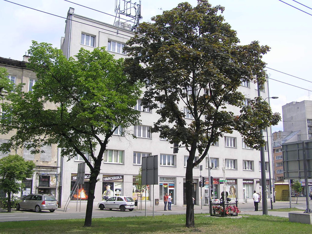 W 1947 roku na tyłach wniesiono zespół murowanych parterowych pawilonów handlowo-usługowych.