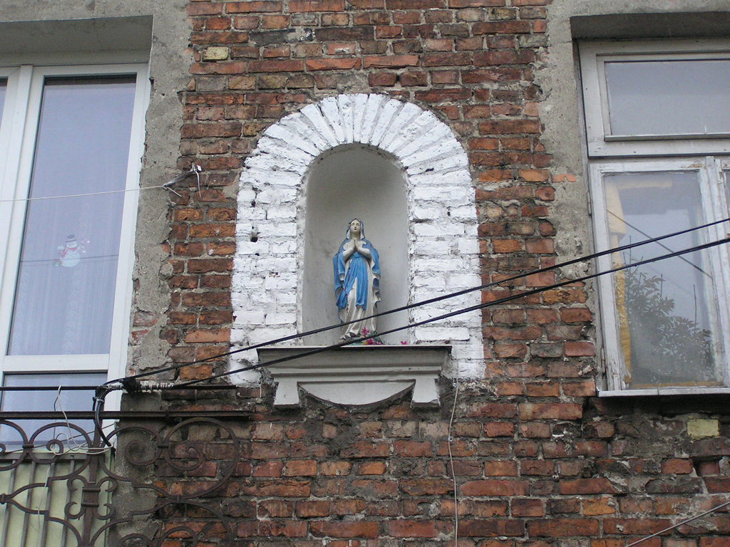 W niszy znajduje się ustawiona jeszcze przed wojną figura Matki Bożej.