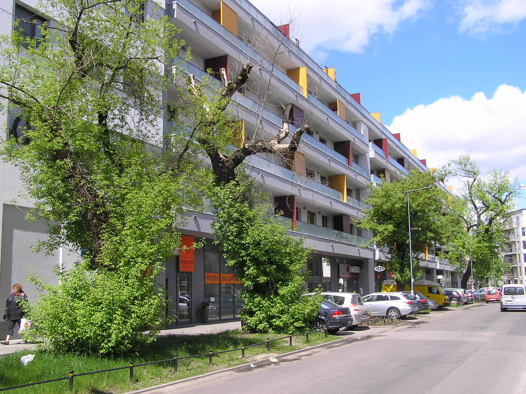 Posiada około 100 lokali mieszkalnych oraz lokale użytkowe w przyziemiu.