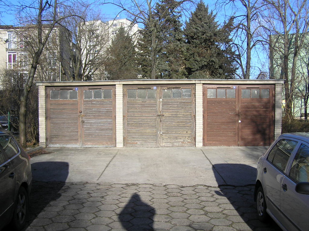 Trzystanowiskowy budynek garażowy został wzniesiony po 1960 roku.