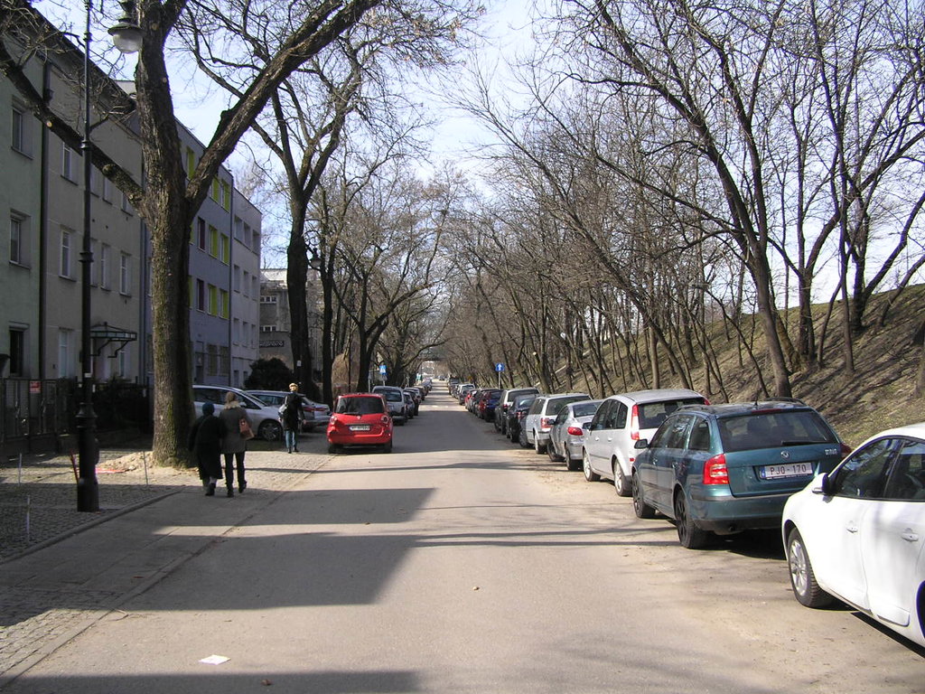 Ulica jest zabudowana jednostronnie, dlatego brak tam numerów nieparzystych.