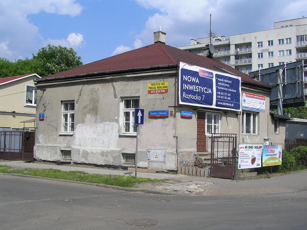 Parterowy dom w narożniku ulic: Kwatery Głównej i Grochowska został wzniesiony przed 1939 rokiem dla Józefa Procha.