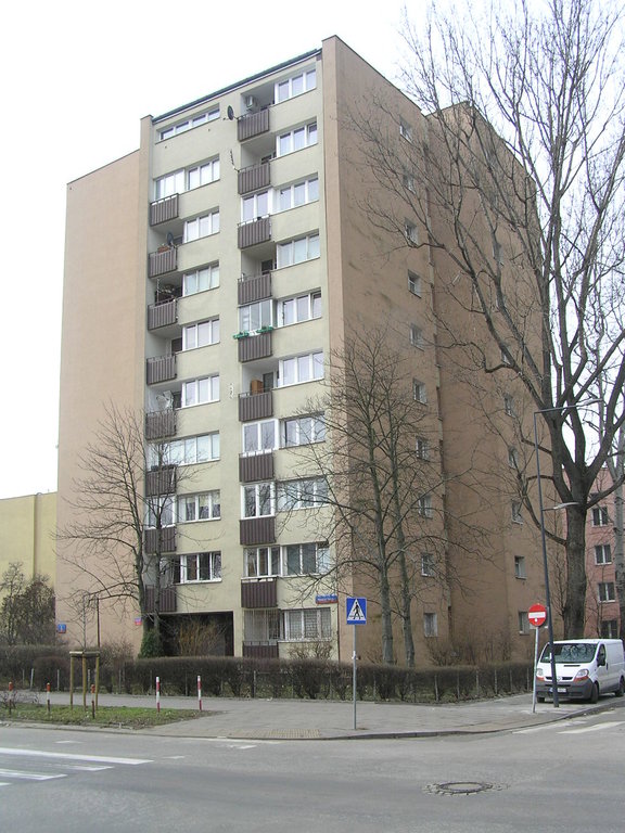 8-mio piętrowy budynek w narożniku ulic: Wspólna Droga i Kordeckiego został wzniesiony około 1965 roku.
