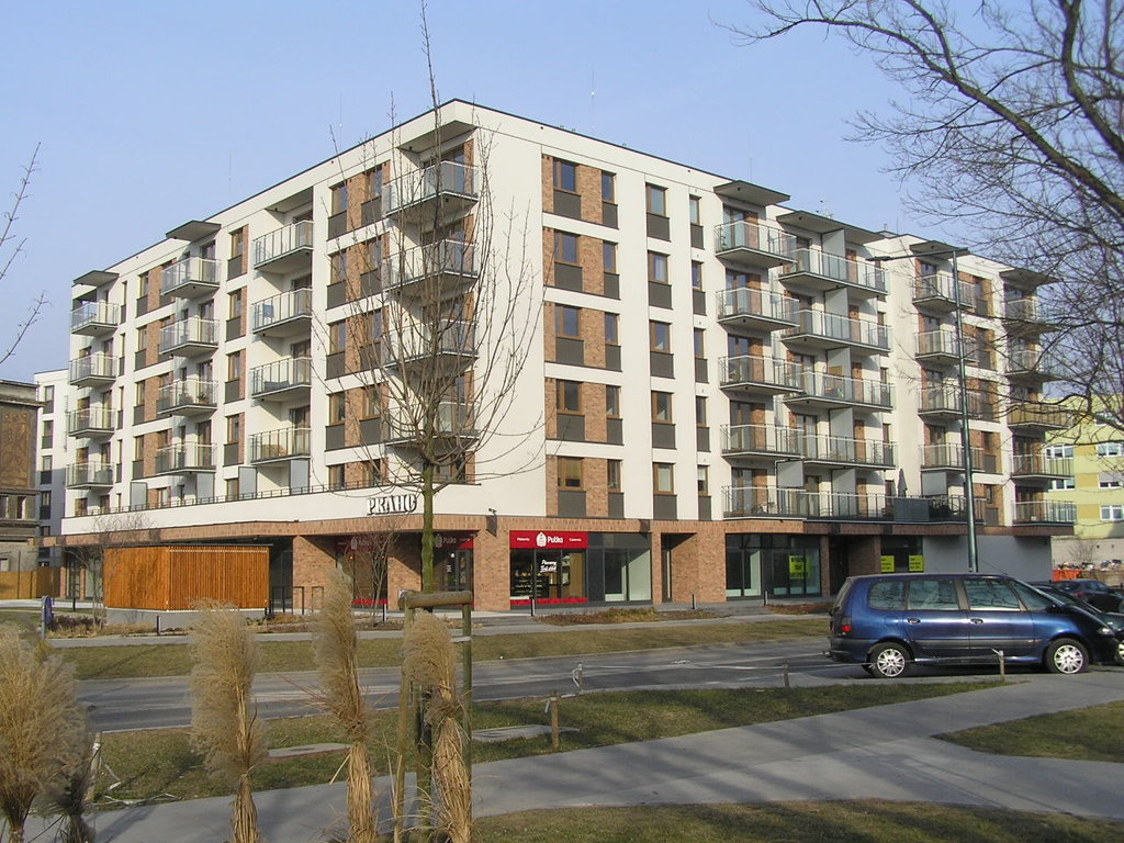 Ulica Podskarbińska 21 - budynek mieszkalny "Praho" w ramach "Osiedle Mińska 69" na Grochowie w dzielnicy Praga Południe w Warszawie.