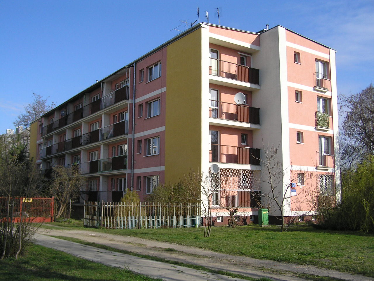 Trzypiętrowy budynek został wzniesiony około 1959 roku. Posiada kilkadziesiąt lokali mieszkalny rozmieszczonych w trzech klatkach schodowych.