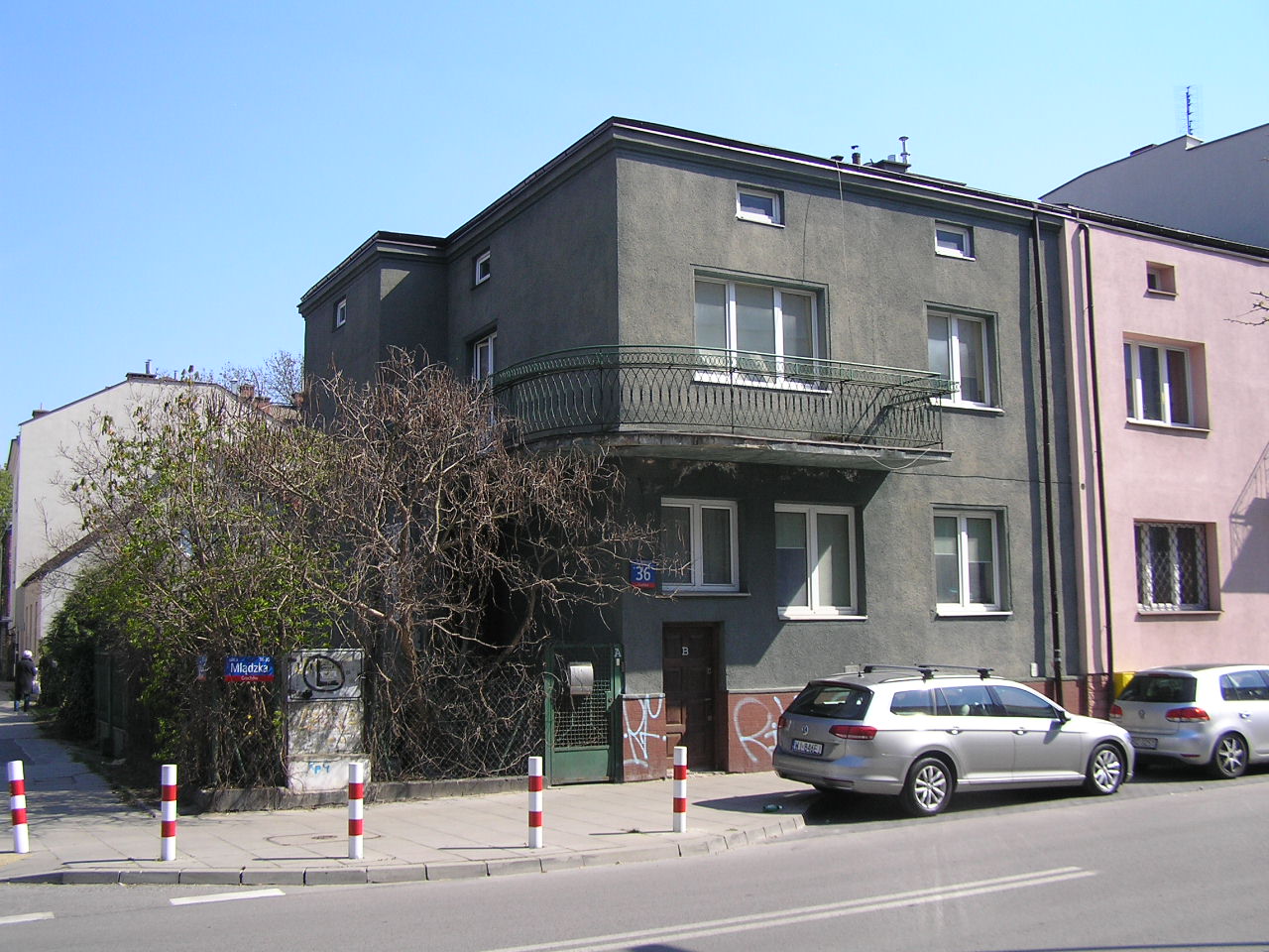 Ulica Mlądzka 36 - dom mieszkalny na Grochowie w dzielnicy Praga Południe w Warszawie.