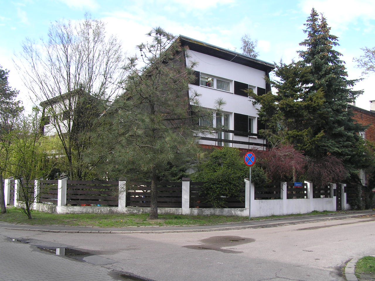 Dwupiętrowy dom w narożniku ulic: Darłowska i Kutnowska został wzniesiony w latach 70.