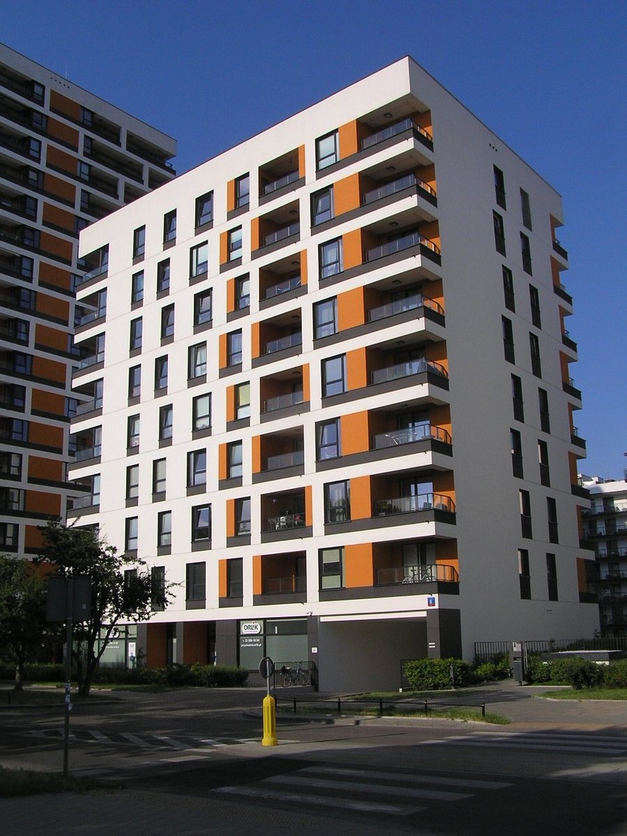 Ulica Motorowa 8 - budynek osiedla "Forma" na Gocławiu w dzielnicy Praga Południe w Warszawie.