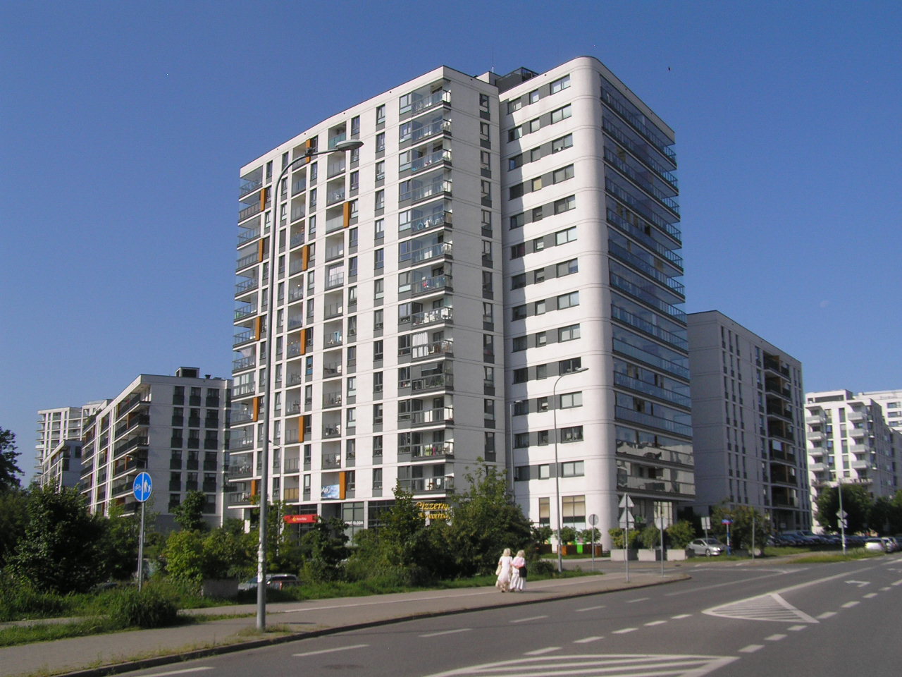 Budynek posiada kilkadziesiąt lokali mieszkalnych, lokale użytkowe w przyziemiu oraz podziemną halę garażową.