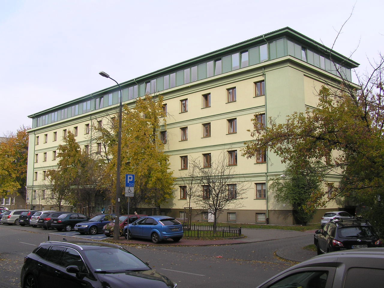Pierwotnie trzypiętrowy budynek biurowy został wzniesiony około 1955 roku jeden hotel robotniczy dla pracowników Fabryki Samochód Osobowych na Żeraniu.