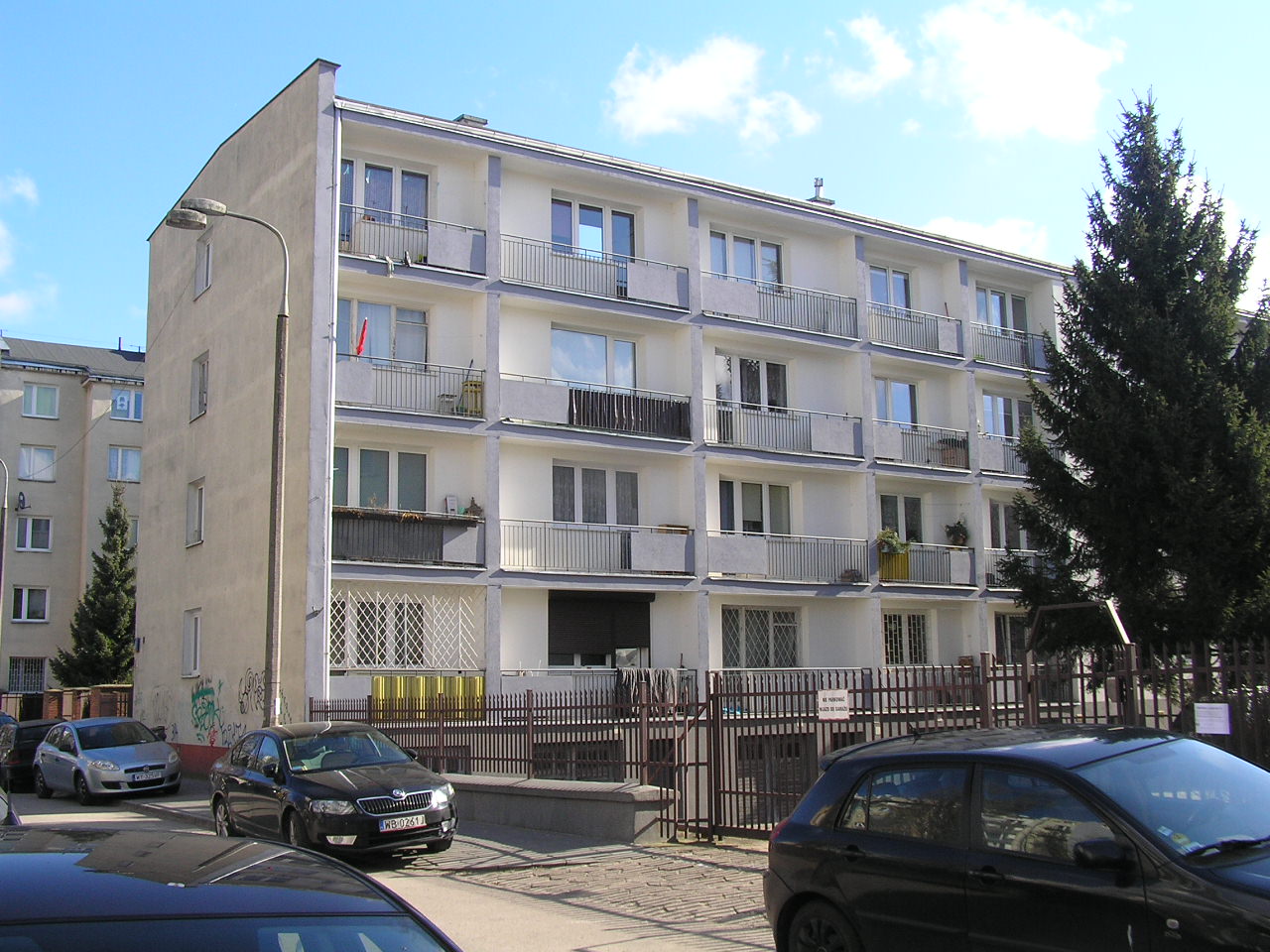Ulica Adampolska 8 - budynek mieszkalny na Saskiej Kępie w dzielnicy dzielnicy Praga Południe w Warszawie.