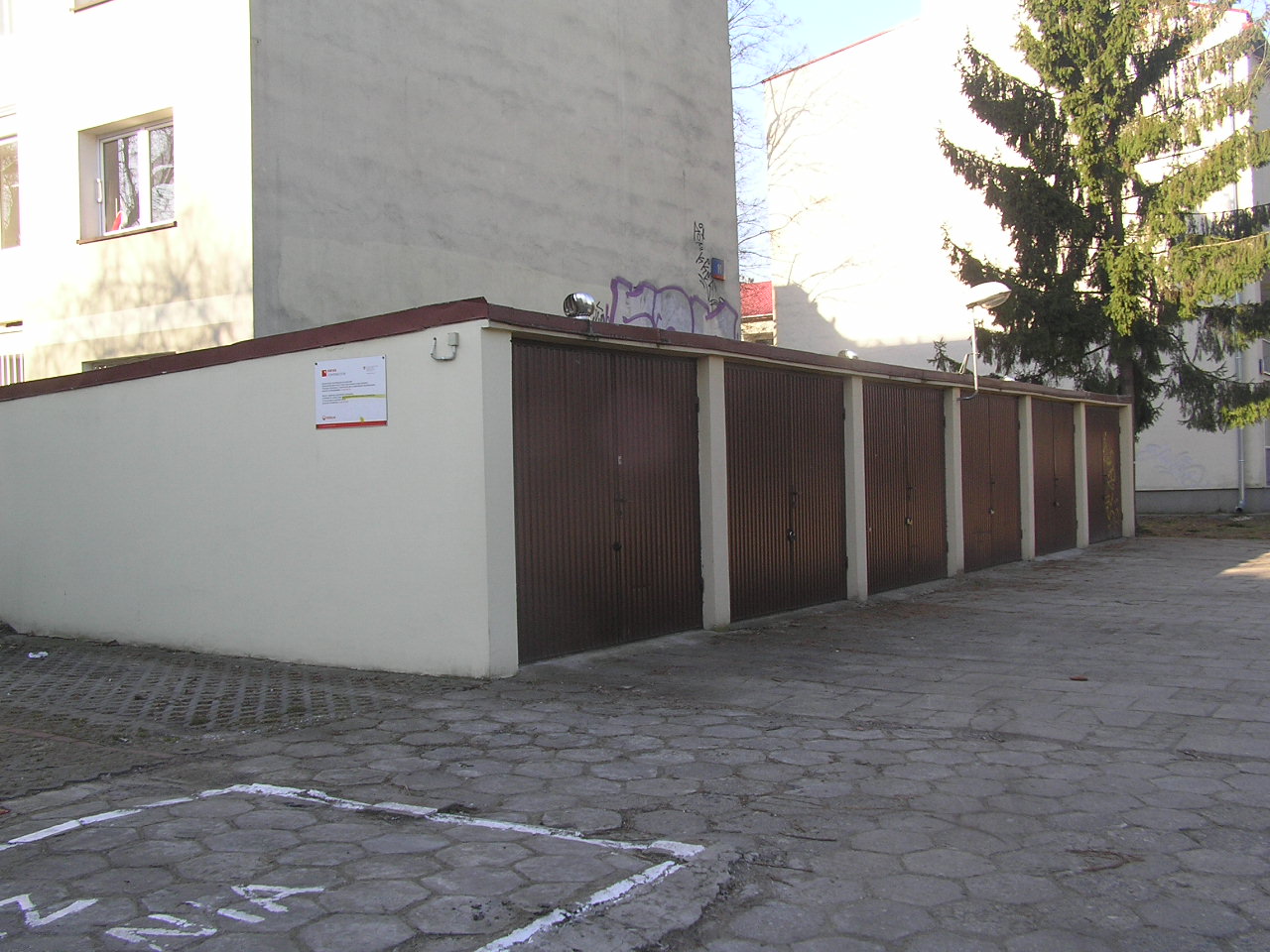Parterowy budynek garaży wzniesiony w latach 60. XX wieku.