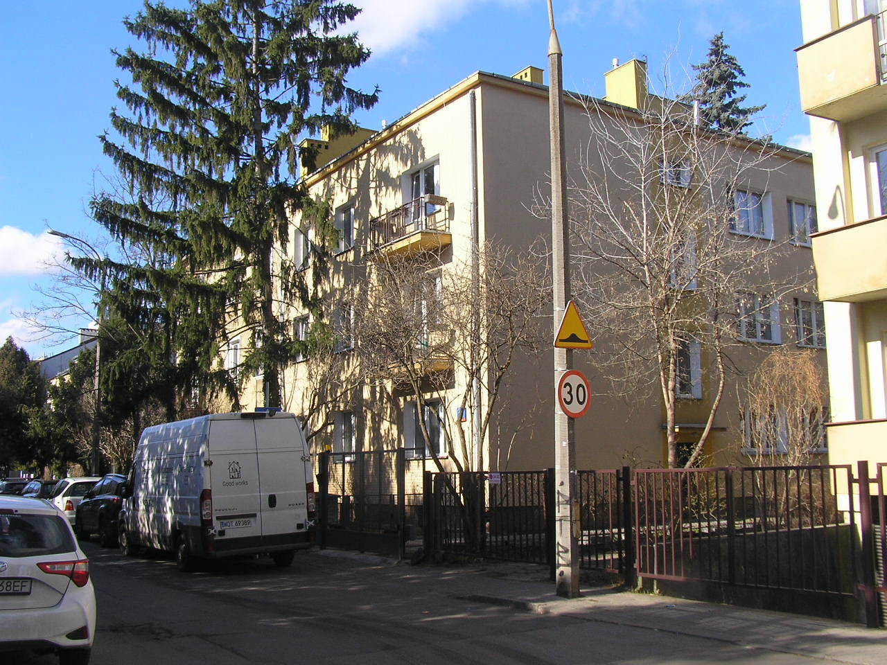 Ulica Angorska 19 - budynek mieszkalny na Saskiej Kępie w dzielnicy Praga Południe w Warszawie.