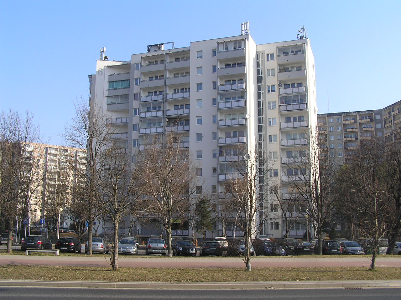10-sto piętrowy budynek został wzniesiony około 1982 roku. Posiada kilkaset lokali mieszkalnych.